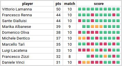 Se guardiamo invece ai “rulli compressori” del mese, dobbiamo inchinarci a Vittorio Lamanna. Cinquanta punti in 10 match sono una media da capogiro. Vittorio sta giocando un padel fantascientifico, quasi robotico per precisione. Anche Sante Gialluisi e Francesco Renna con i loro 44 punti mensili dimostrano di avere una fame chimica di vittorie. Marika Albanese segue a ruota con 39 punti, confermandosi una delle giocatrici più in forma del momento.